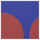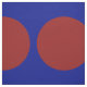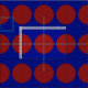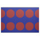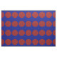 Stylish geometric fabric features a bold pattern of large red polka dots on a blue background.
