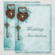 Large Romantic Hearts Lock and Key Teal Wedding Invitation