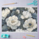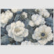 Large scale White poppies decoupage Tissue Paper for DIY craft projects, furniture and gift wrapping. White poppies with green leave on black background.