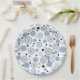 Large Slate Blue Silver Geometric Circles Paper Plate