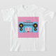 Introducing our Girls' Blue Stereo on Pink Background Graphic T-Shirt – a vibrant and playful addition to any young fashionista's wardrobe! This eye-catching design combines the cool, retro charm of a classic blue stereo with the fun and energetic flair of a pink background.