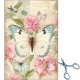 Large and small Teal Cream Butterflies amid Huge Pink Flowers on a beige vintage style script background Tissue Paper. Thank you to a wonderful artist!