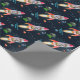 Large Three with Photos | 3rd Birthday Space Rocke Wrapping Paper
