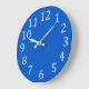 These wall clocks feature large white numbers on a plain solid medium blue background. Purchase online at CherylsArt on Zazzle.