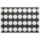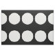 Stylish fabric features a bold geometric pattern of large white polka dots on a black background.
