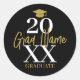 Large Year - Grad Name and Cap - Black Gold Classic Round Sticker