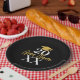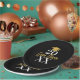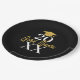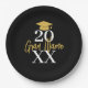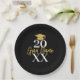 A modern black and gold plate with a gold grad cap and bold text with a theme. A great graduation party decor addition to celebrate the graduate. Personalize with a name and date.