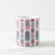 This mug has an art deco design of larger repeating dome shapes with tree shapes inside them. If you like the design but prefer different colours, message me.