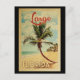 A uniquely retro mid-century modern Largo Florida art print in vintage travel poster style. It features a curved palm tree on sandy beach with ocean under a blue cloudy sky.