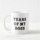 Conception amusante pour le travail pour taquiner votre patron. Le texte sur la tasse dit "Larmes de mon patron".