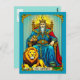 Carte postale dans un design inspiré du tarot avec "L'Empereur" assis sur un trône, couronné et robed en bleu et rouge royal. Un lion puissant est assis à ses côtés, symbolisant la force et l'autorité. La carte symbolise la stabilité, le leadership et la discipline.
