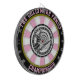 OEuvre circulaire d'un cerf aux gros bois dans une forêt paisible, accentuée d'une cible.