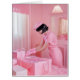 Une femme habillée la tête aux pieds dans un rose doux enveloppe méticuleusement les cadeaux dans une pièce rose parfaitement coordonnée. Sa tenue assortie, comprenant des gants et un casquette, ajoute une touche vintage, complétant l'esthétique féminine et pastel de l'espace. Les boîtes-cadeaux soigneusement arrangées, toutes ornées de rubans roses soyeux, créent une atmosphère d'élégance et de précision. La scène évoque un sentiment de calme et d'ordre, avec un accent mis sur la beauté de la simplicité et l'uniformité des couleurs et du style.