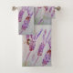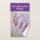 Lavender Purple Floral Art Ne vous inquiétez pas Bee Happy Serviette Set, avec un mot entièrement personnalisable. Conçu à partir de mon illustration originale d'aquarelles de jardin.