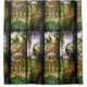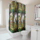 Les beaux-arts vintages de Nouveau d'art merveilleux d'une reproduction de fenêtre en verre teinté de Tiffany des oiseaux de paon et de perroquet dans une volière avec des fleurs et des baies, et beaucoup plus dans la scène, sont sur ce rideau en douche. L'image est public domain dû à copyright expiré.