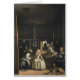 Las Meninas, Diego Velázquez, 1656 Las Meninas (espagnol pour les servantes d'honneur) est un tableau de 1656 de Diego Velázquez, l'artiste principal de l'âge d'or espagnol, dans le Museo del Prado à Madrid. La composition complexe et énigmatique de l'oeuvre soulève des questions sur la réalité et l'illusion, et crée une relation incertaine entre le spectateur et les figures représentées. En raison de ces complexités, Las Meninas a été l'une des oeuvres les plus largement analysées dans la peinture occidentale. Le tableau montre une grande salle du palais madrilène du roi Philippe IV d'Espagne, et présente plusieurs figures, les plus identifiables de la cour espagnole, capturées, selon certains commentateurs, à un moment particulier comme dans un instantané. Certains regardent de la toile vers le spectateur, tandis que d'autres interagissent entre eux. La jeune Infanta Margarita est entourée de son entourage de domestiques d'honneur, de chaperon, de garde du corps, de deux nains et d'un chien. Juste derrière, Velázquez se décrit comme travaillant sur une grande toile. Velázquez regarde vers l'extérieur, au-delà de l'espace pictural jusqu'à l'endroit où se trouverait un spectateur du tableau. Dans l'arrière - plan il y a un miroir qui reflète les corps supérieurs du roi et de la reine. Ils semblent être placés à l'extérieur de l'espace photo dans une position similaire à celle du spectateur, bien que certains chercheurs ont spéculé que leur image est un reflet de la peinture sur laquelle Velázquez est montré en travaillant. Vintage rétro mignon cool coloré belle artistique unique créatif original personnages d'intérieur portrait célèbre Réalisme moderne décoration de mode élégante peinture d'art.