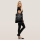 Funny Black and Grey Las Vegas Bachelorette custom tote bag with "A bride, her besties, and booze ... what could go wrong?" funny quote in modern trendy large font with calligraphy script accent and personalized text for the occasion, date, and location. All colours and fonts are editable if you'd like to create your own funny bachelorette tote bag for your bridesmaids and besties with any colours, font, design or photos.