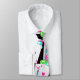 This version of the tie is done in neon colours pink, blue and green with a black background.