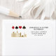 Élégantes et modernes étiquettes d'adresse de retour Las Vegas Destination Wedding. Design caractéristiques Las Vegas City Skyline En or, clubs, diamants, coeurs et pique des icônes en or élégant cadre et adresse en lettrage tendance.