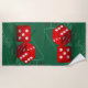Red Dice with Las Vegas text on them, set upon a craps table background. ~~~