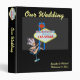 A photo album for couples who elope to Las Vegas to get married. This wedding album or memory book has a design combining a personalized marriage anouncement on the famous welcome sign on The Strip with fun retro style showgirl art.