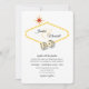 Las Vegas marquee sign wedding and dice on white with red playing card design on the reverse.