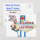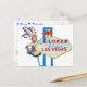 A fun Las Vegas wedding announcement with vintage casino showgirl art and the famous welcome to fabulous Las Vegas sign. Affordable and fun design for couples who elope and plan a celebration or reception back home or at a later date. Brides and grooms can customize the text template areas to add their desired information.