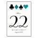 Black and teal glitter card suits look glitzy on this Vegas themed double sided white table number is a great addition to your reception decor. Personalize all the text including the table name, number and get creative with the two lines of text at the bottom with your new last names, wedding date, location and even custom table names or a personalized note about your love story.
