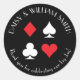 Red and white card suits are circled by customizable text making these round black stickers perfect for all kinds of projects and occasions. Use them to label favours for wedding guests, to close envelopes and more.