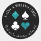 Faux teal glitter and white card suits are circled by customizable text making these round stickers perfect for all kinds of projects and occasions. Use them to label favours for wedding guests, to close envelopes and more.