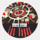 Casino gambler Las Vegas theme party sticker has matching invitations. The Las Vegas text may be removed for casino theme or poker night parties in any location.