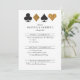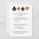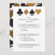 Perfect for a Vegas wedding or a casino themed event, this timeline card features faux gold glitter and black card suits on a white background with fully custom text and a coordinating matching backer. Include in your guests' invitations or add to your welcome bags, this printed timeline will help keep guests in the know of what is when and where to go.