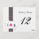 pink Las Vegas Wedding Table numbers with 3 aces and a touch of damask .Matching products also available