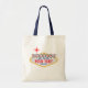 These bags were super cute (I purchased 3). The material is more of a canvas look & feel. The colour of the bag is slightly off white, but the letters look exactly as pictured. I took 3 photos in different lighting. Would recommend! I liked how there was an option to choose the font and colour of the name. The words are legible and the colours are exactly as pictured.