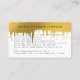 A trendy faux gold metallic drip design with chic distressed script monogram. A modern style with a touch of grunge attitude! An ideal business card and lash aftercare instructions for estheticians, beauty therapists etc.