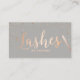 Lashes Makeup Artist Rose Gold Script Elegant Grey Business Cards.