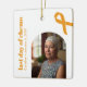 Appendix Cancer ornament helps commemorate the final day of chemotherapy. Design features amber coloured appendix cancer awareness ribbon. Personalize with name, date and photo.
