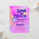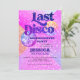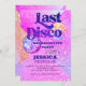 Retro 70's Disco Ball bachelorette Party invitation featuring sparkle pink and purple balls over a glittery background. +++++++++ Suitable for a trendy modern retro themed bride to be celebration.