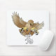A hawk swoops down on a tiny mouse with sharp talons ready to grab the helpless but defiant mouse.