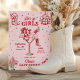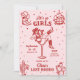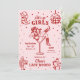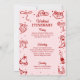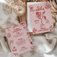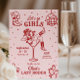 This pink and red bachelorette weekend invitation and itinerary features a bold retro western “last rodeo” theme with playful doodle-style illustrations, perfect for celebrating in true cowgirl fashion anywhere. The front showcases a confident cowgirl lounging in a martini glass, surrounded by whimsical doodles of cowboy boots, hats, disco balls, cacti, and stars, blending rustic western charm with lively party vibes. The back displays a complete weekend itinerary framed by coordinating doodle icons like lassos, boots, cocktails, and horseshoes for a fun and cohesive look. With its vibrant colour palette, cheeky hand-drawn details, and matching front-and-back design, this invitation is ideal for an unforgettable western-themed girls’ getaway or bachelorette celebration. Available as printed cards or an instant digital download.