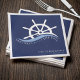 Nautical blue and white bridal shower / bachelorette party napkin with ship helm and phrase "last sail before the veil". Personalize it with your event details.