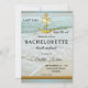 Last sail before the veil: An elegant hen or bachelorette weekend getaway itinerary template invitation featuring a nautical theme with anchor (optional) and beach imagery. On the back is a QR code template to easily link to your own website.