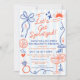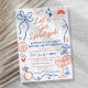 Transport your bridal party to the Italian Riviera with these "Let’s Get Spritzed" bachelorette party weekend itinerary invitations. Perfect for an Amalfi Coast, Positano, or Mediterranean-themed weekend, this design features chic hand-drawn illustrations of citrus sprig, Aperol-style cocktails, and breezy coastal elements. The front side features a playful "Ciao Bella" theme with all your event details, while the reverse side includes a fully customizable hourly itinerary to keep the "spritz" flowing from arrival to the farewell brunch. Printed on premium cardstock or as a digital download, with a classic blue and off-white cabana stripe background, these invitations capture the effortless elegance of an Italian summer.