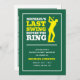 Send the groom off in style with this bold, funny golf-themed bachelor party invitation and weekend itinerary. Featuring a “Last Swing Before the Ring” front and a detailed game plan on the back, this two-sided design keeps the crew informed—and ready to party. Fully editable for names, dates, destinations, and activities. Perfect for golf bachelor parties, guys’ trips, and destination weekends filled with fairways, beers, and bad decisions. A must-have invite for any legendary bachelor weekend.