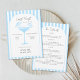 Celebrate the bride-to-be with a destination bachelorette. This "last toast on the coast" bachelorette party is fun and elegant, featuring a boho arch with nautical stripes in the background and a minimalist cocktail glass on the front, all in a shade of light blue. A cross between "something blue before I do" and the "last..." theme, this elegant and classy itinerary invitation will get the girls on the road. Pop the champagne, bring out the suncreen, the swim suits and the sunglasses and have a wild time! Simple and modern, it's the perfect way to give her a celebration to remember as she transitions from Miss to Mrs.