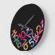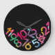 Custom funny wall clock featuring colourful fallen numbers dropped on the bottom.