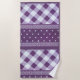 Featuring a chic white and purple chequered pattern, our beach towel is a stylish statement piece that will turn heads wherever you go. Whether you're lounging by the pool or soaking up the sun on the sand, its eye-catching design will set you apart in style.