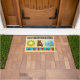 This mat will work great in a school setting, but elsewhere, too. The top line features the standard and, basically, only Latin greeting, "Salvete." Three images help emphasize the summer setting: the sun, a bear enjoying ice cream, and swimmers. The bottom line says, "Aestas," the Latin word for "summer, in an attractive font. I plan to put this mat at the door to my classroom.