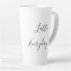 On a classic white latte mug is the text "Latte Everyday" for latte lovers everywhere in decorative script in which you can change it to your own personal text or logo. Minimal modern vibes.