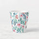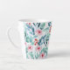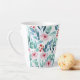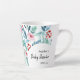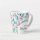 Latte Mug pour le baby shower, décoré avec d'adorables images plantes aquarelle avec des feuilles émeraude pastel et bleu, des branches et des roses douces roses.